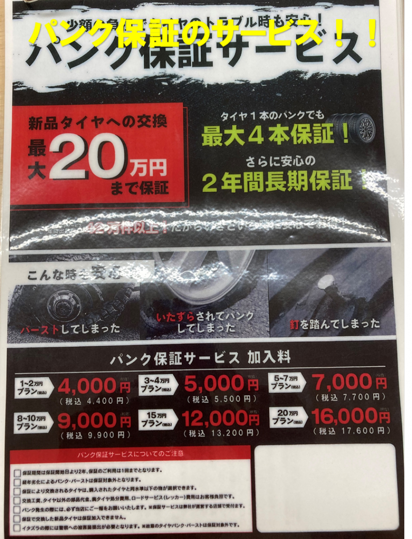 9/1~10/1までの期間オープン記念として全サイズ工賃無料やタイヤ4本購入で11月末まで預かり無料や先着50名様に限定グッズをプレゼントしておりますので是非期間限定にタイヤご購入して頂きたいと思いますので気軽にタイヤのことご相談下さいませ!