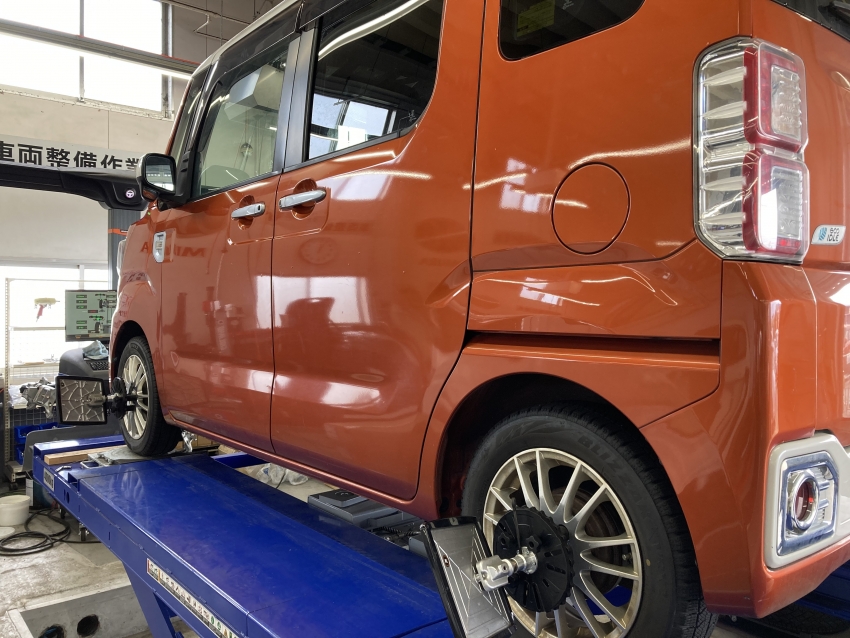 昨日に引き続きダイハツ ウェイクのアライメント調整をさせて頂きました!このお車は車検でご入庫したお車になります!