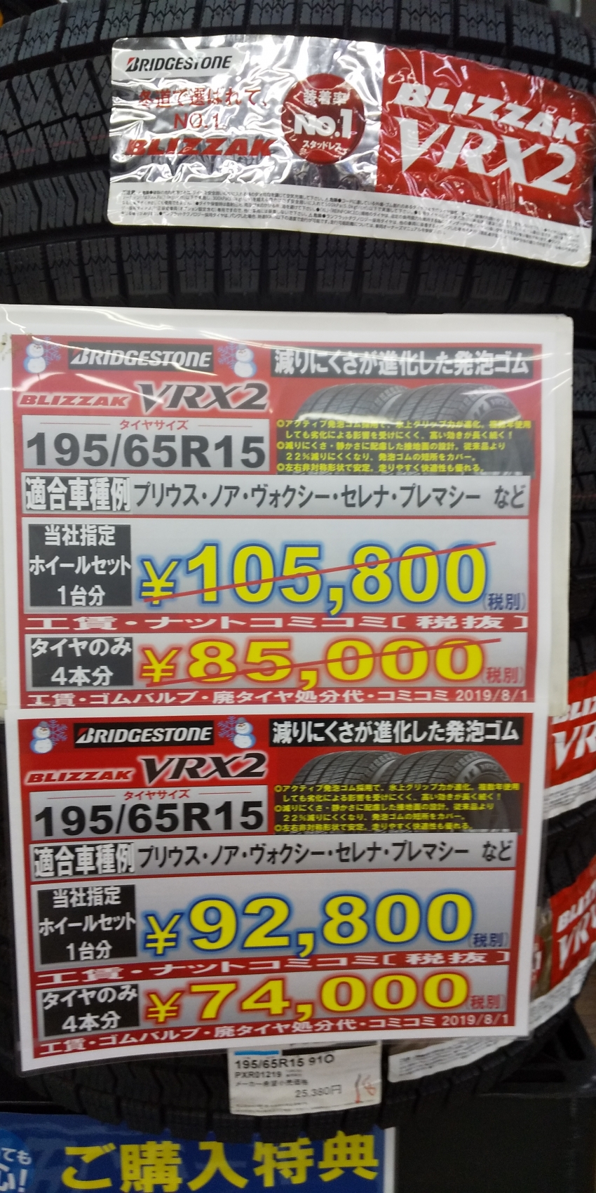 ブリヂストン VRX2 195/65R15