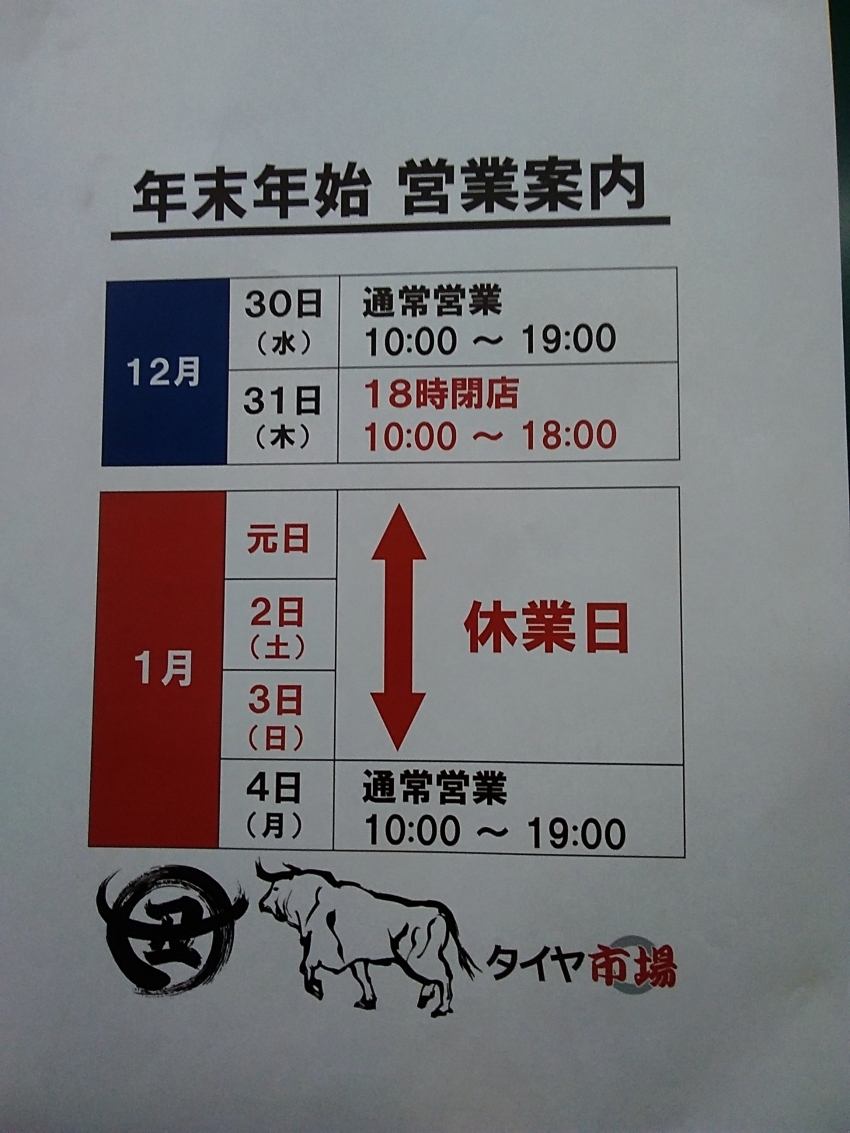 年末年始 営業時間のお知らせです