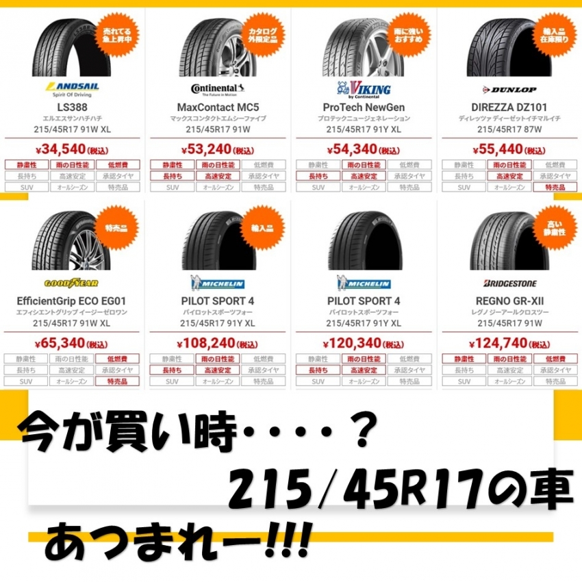 215/45R17 が今安い!!!