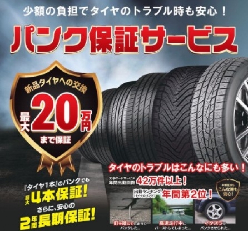 当店で4本ご購入の際には是非、こちらのパンク保証を!