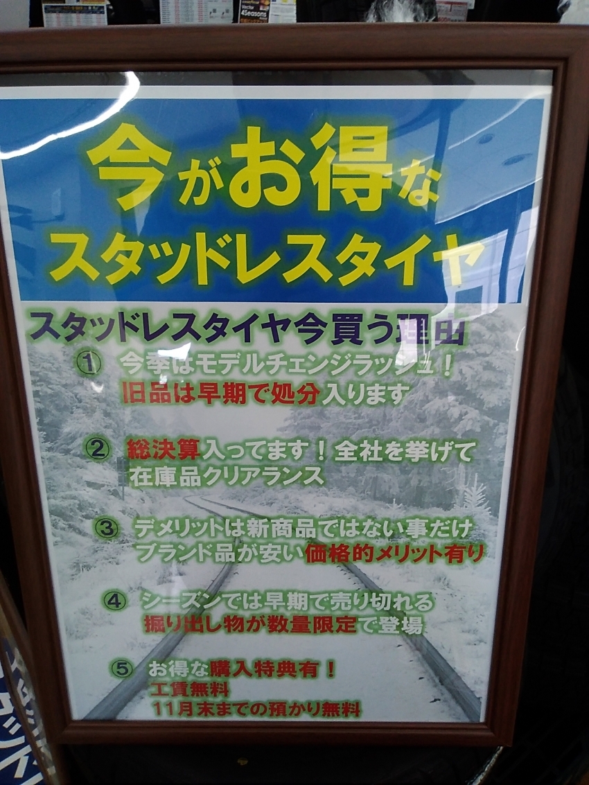 また、スタッドレスタイヤをお持ちじゃない方や車を納車したばっかり方は早めの交換をオススメします!