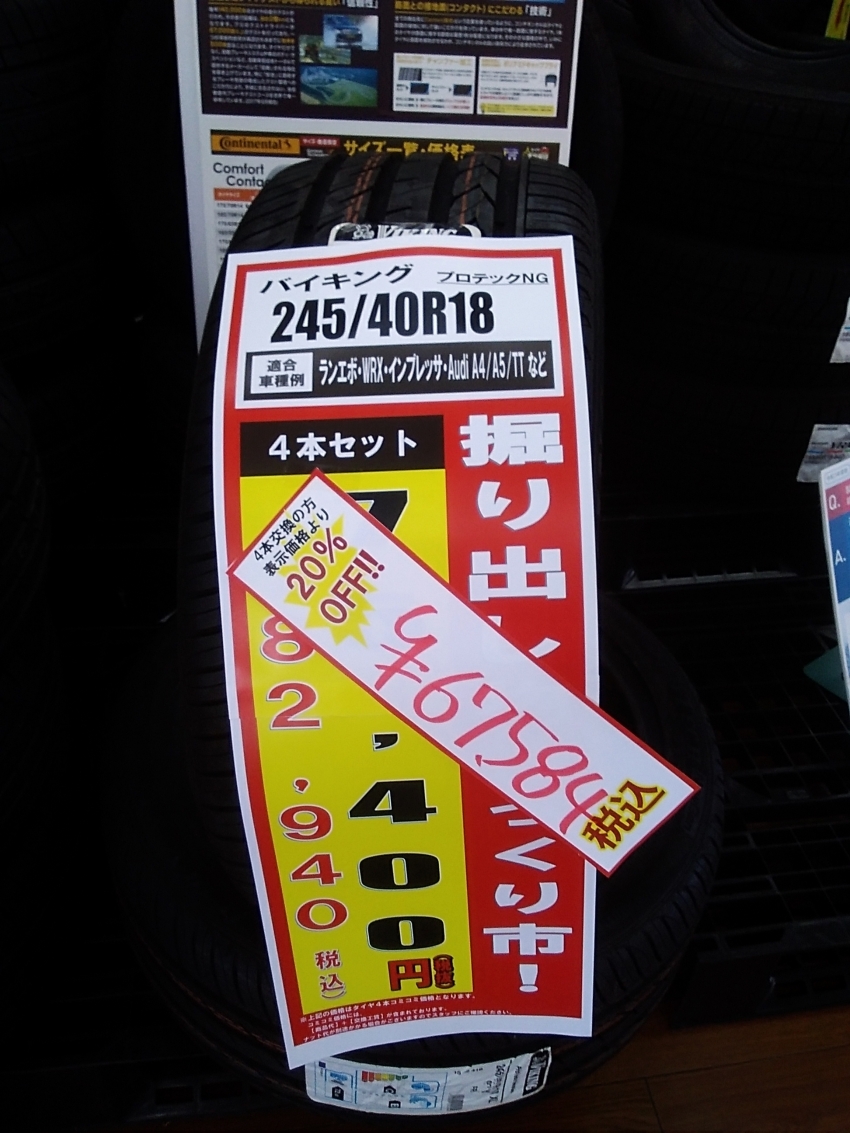 アウトレットセール中!タイヤが安い!ランエボ・WRX ・アウディA 4、A 5オーナー必須買うなら今!!