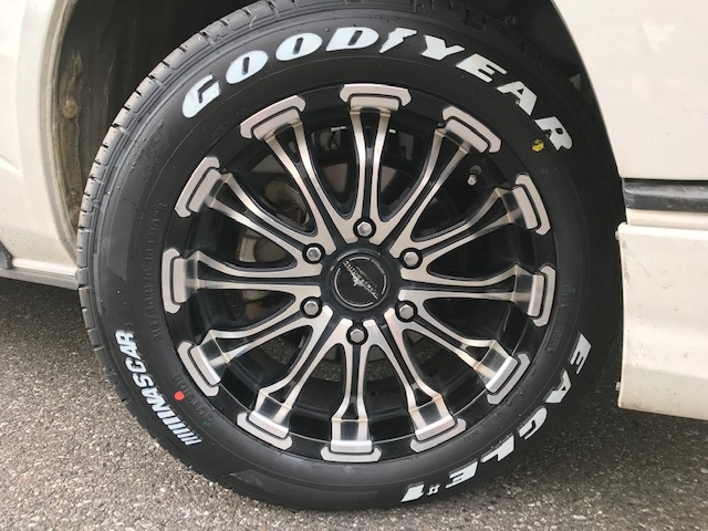 ハイエースのタイヤ交換!グッドイヤー ナスカー215/60R17!ホワイトレター当日作業可能!