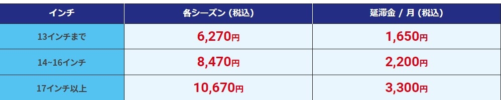 タイヤホテルサービス料金はこちら↓