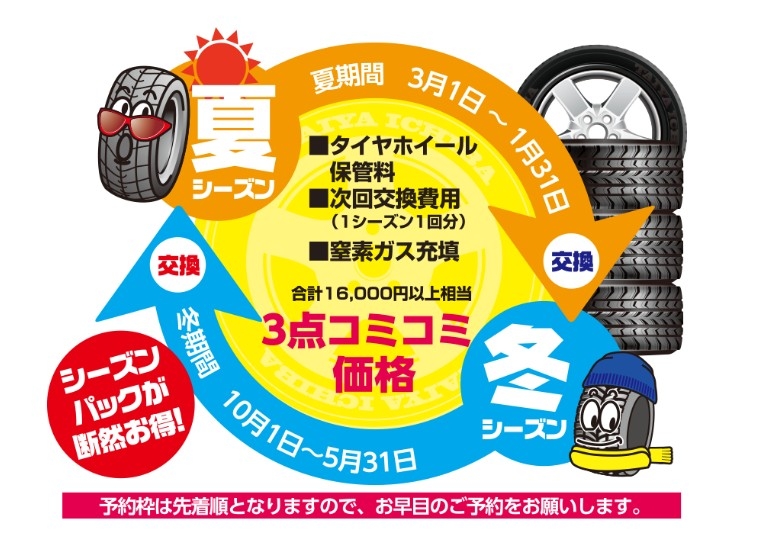 スタッドレスタイヤ早期ご購入・タイヤホテルサービスとも、