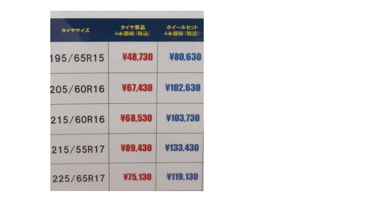 195/65R15(プリウス・ヴォクシー・ノア。セレナ・アクセラ・カローラ・ウィッシュなど)