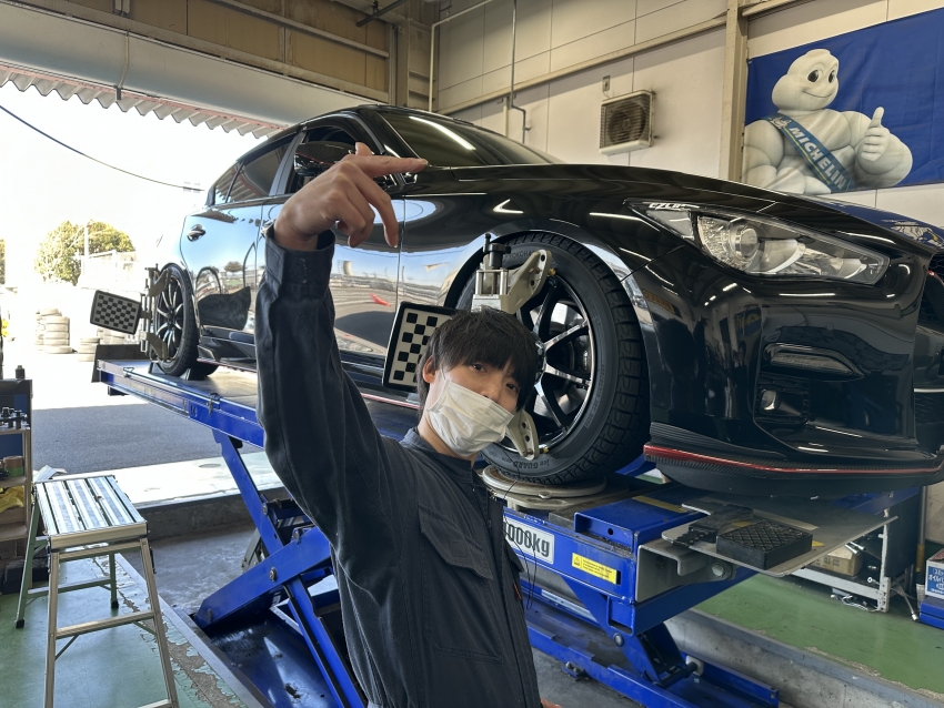 先日スカイラインでご来店頂きましたお客様のお車のアライメント調整をさせて頂きました!