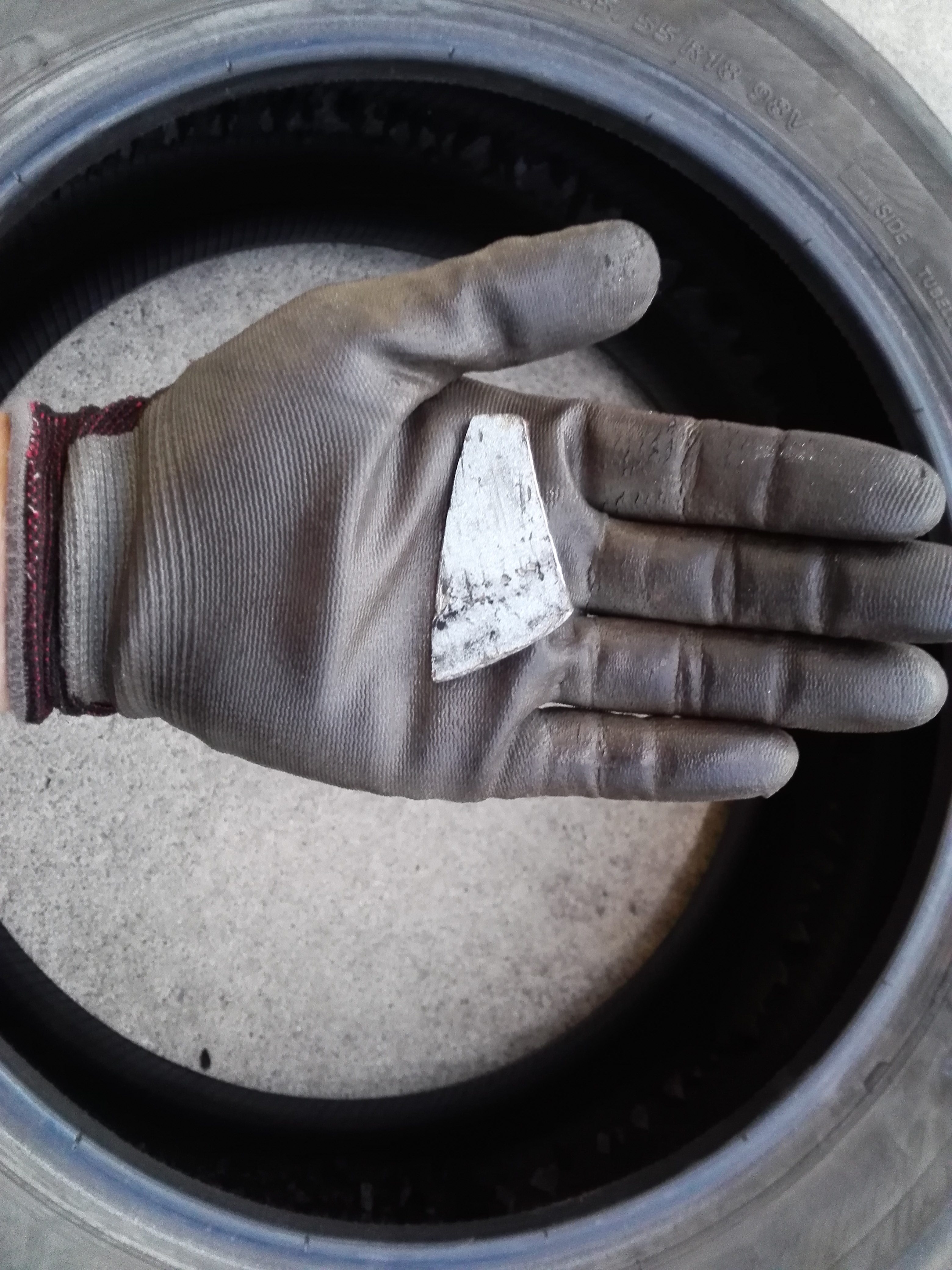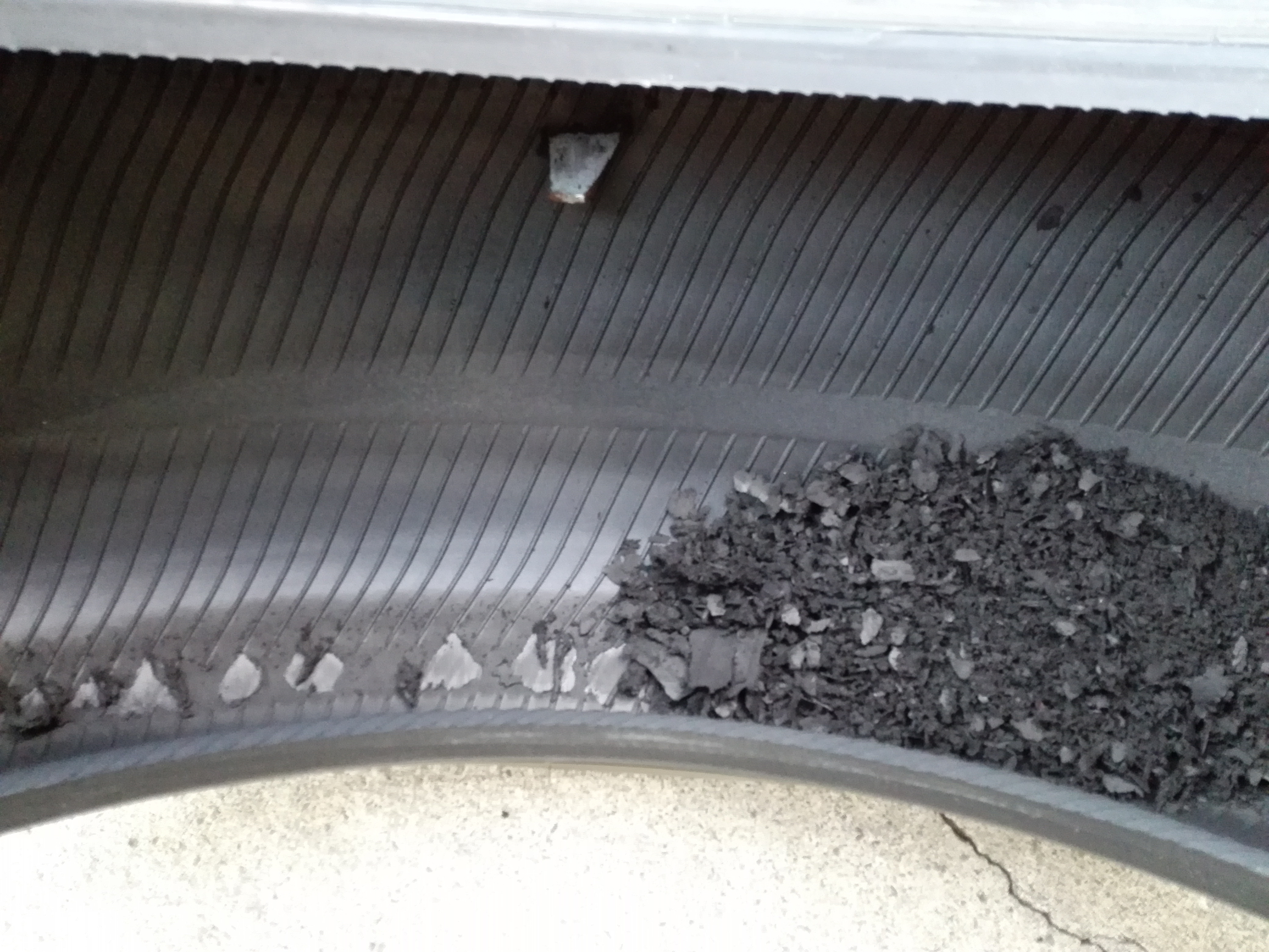 タイヤの内部が削れてカスが溜まっています、パンクの原因がこちら、大きな鉄の薄い板が出てきました。IMG_20191028_164845.jpg