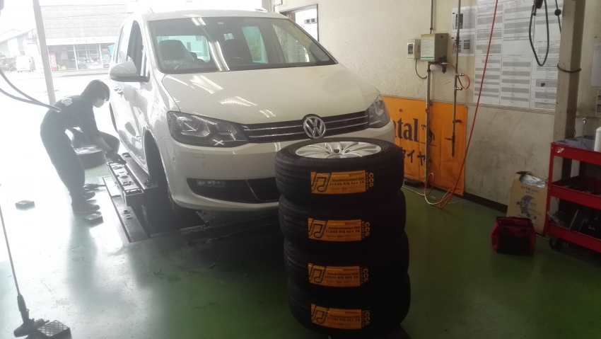 シャランのタイヤ交換作業を承りました!!