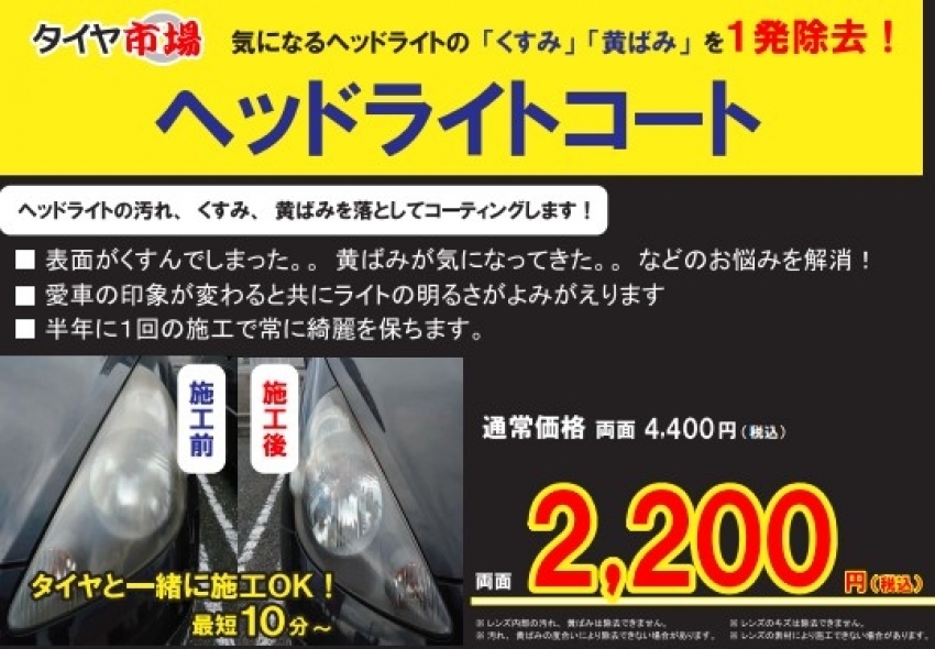 タイヤ交換とご一緒に!ヘッドライトコーティング!!