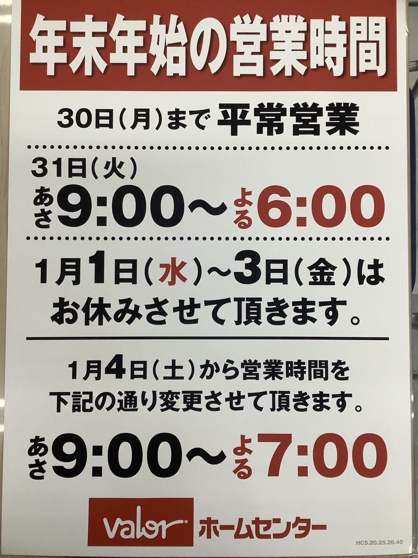 ここで年末年始の営業時間のご案内です。