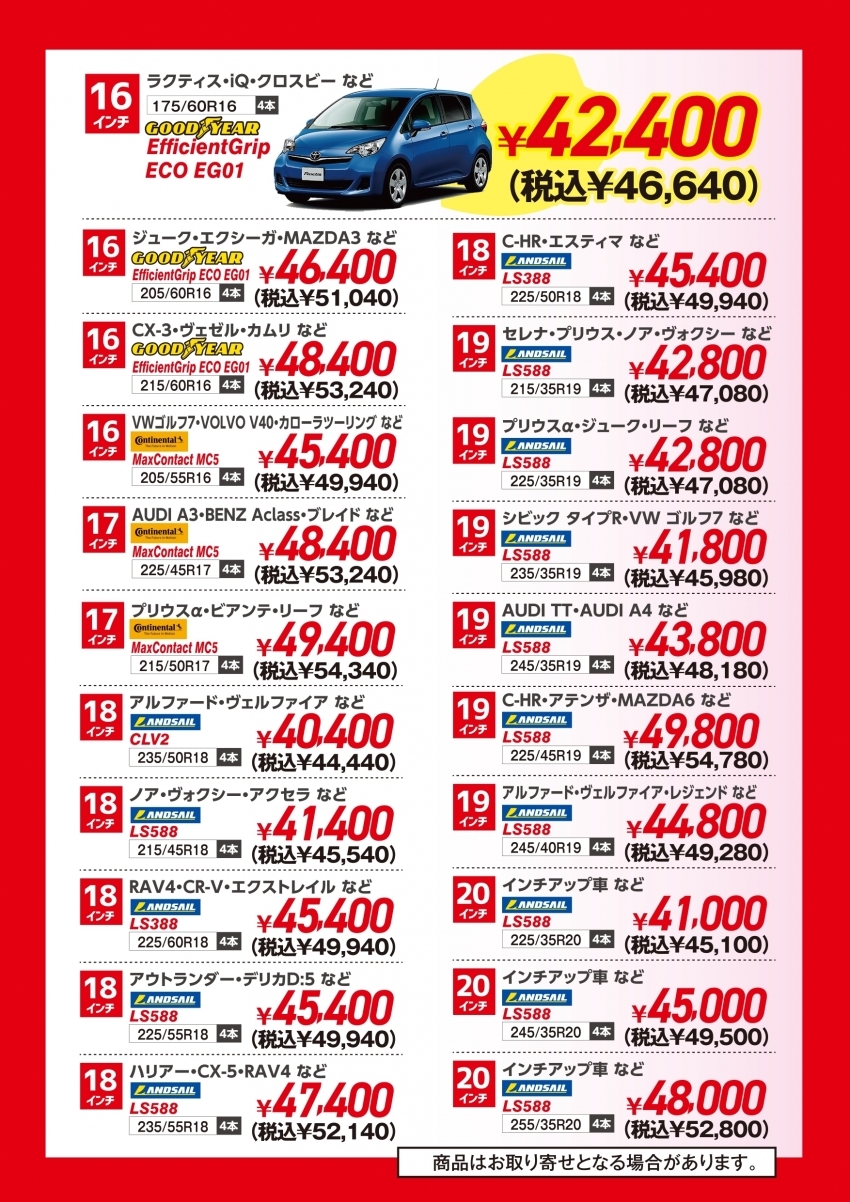 かなりのお手頃価格タイヤ、春の特別キャンペーンなので