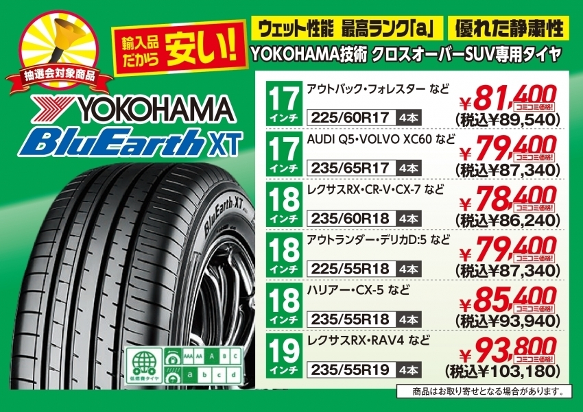 ヨコハマのSUVタイヤが安い!
