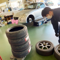 こちらのお車、フロントタイヤの外べりが進んでおり、溝がかなり浅くなっておりました( ;∀;)