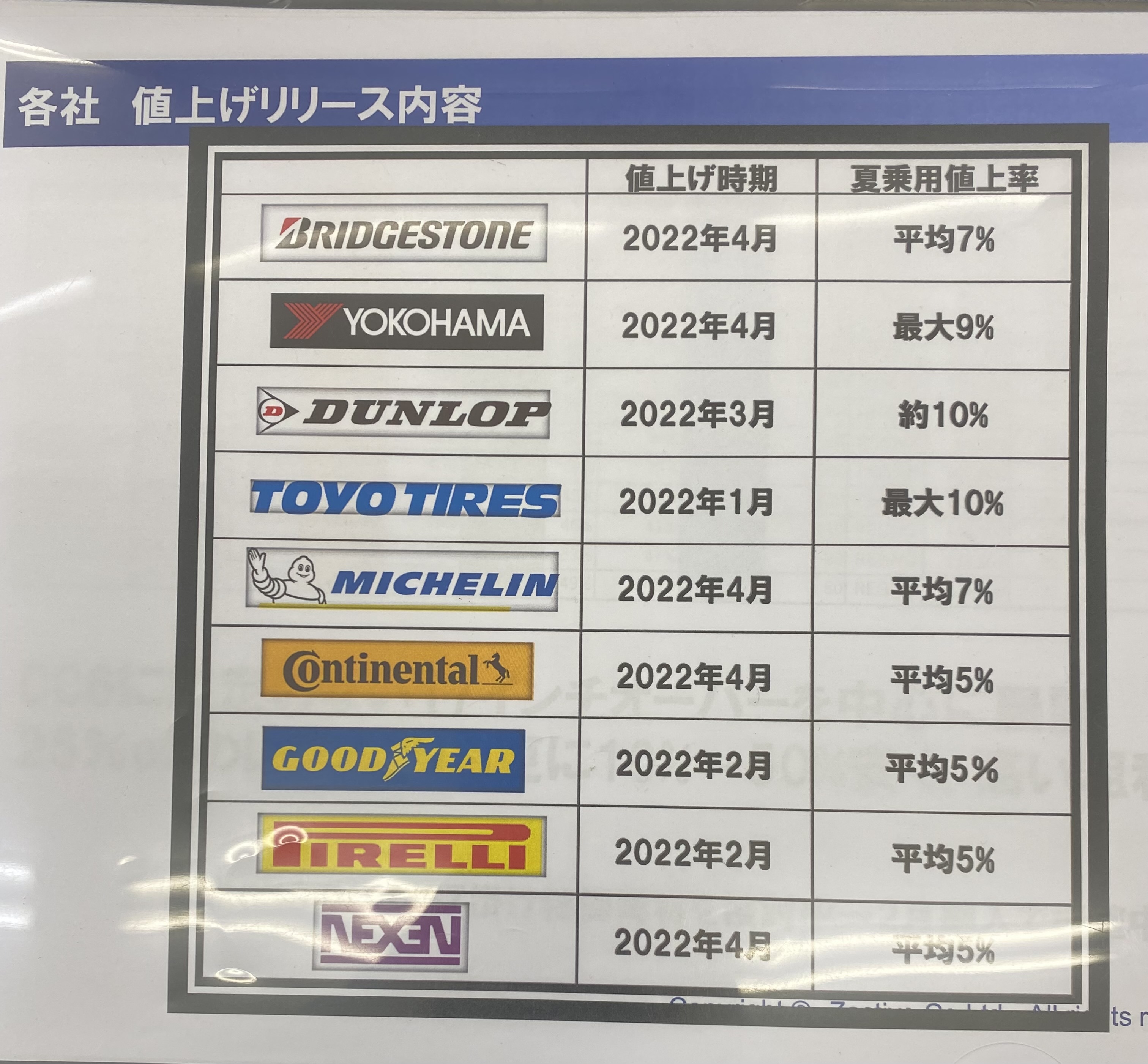 夏タイヤの値上が各メーカー発表された!!!