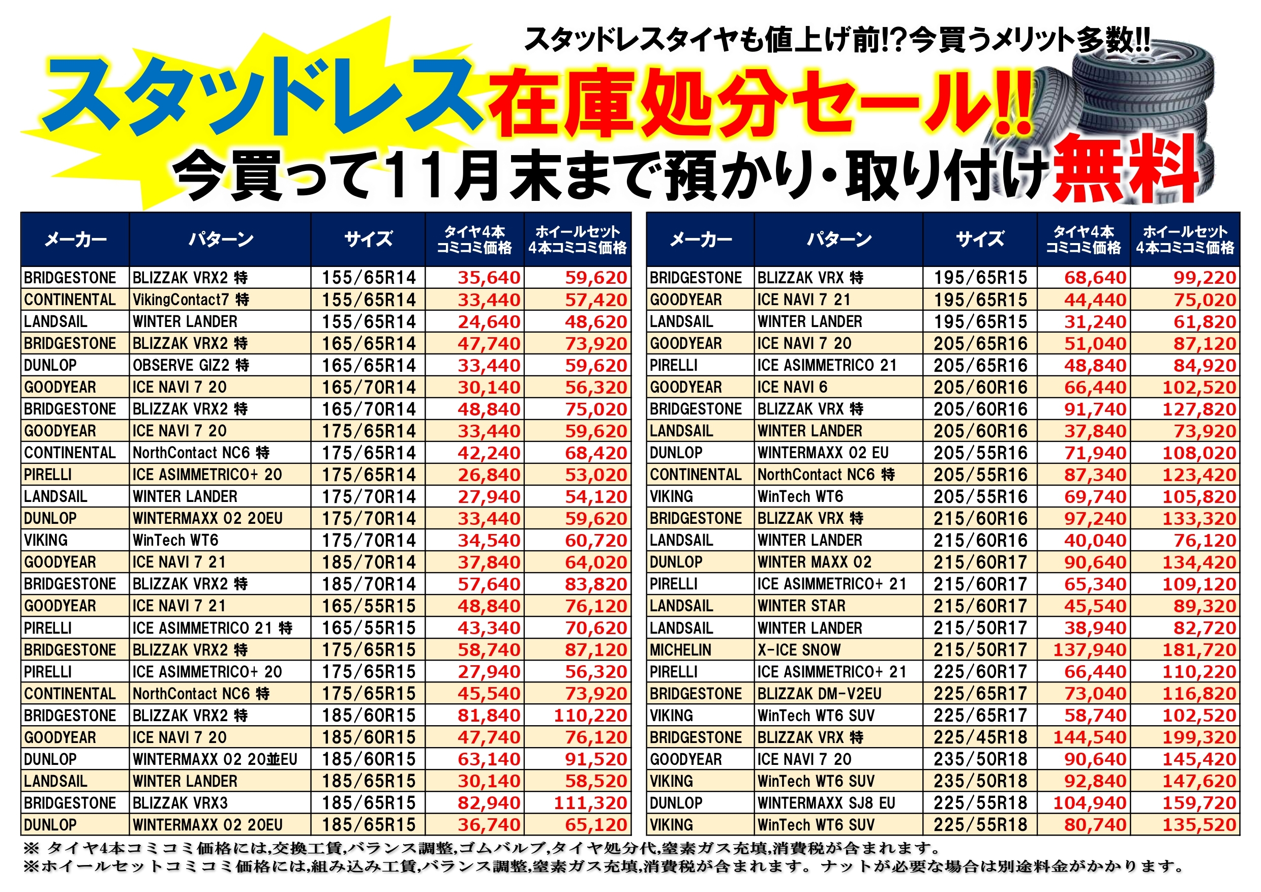 スタッドレスタイヤの早期アウトレットセール