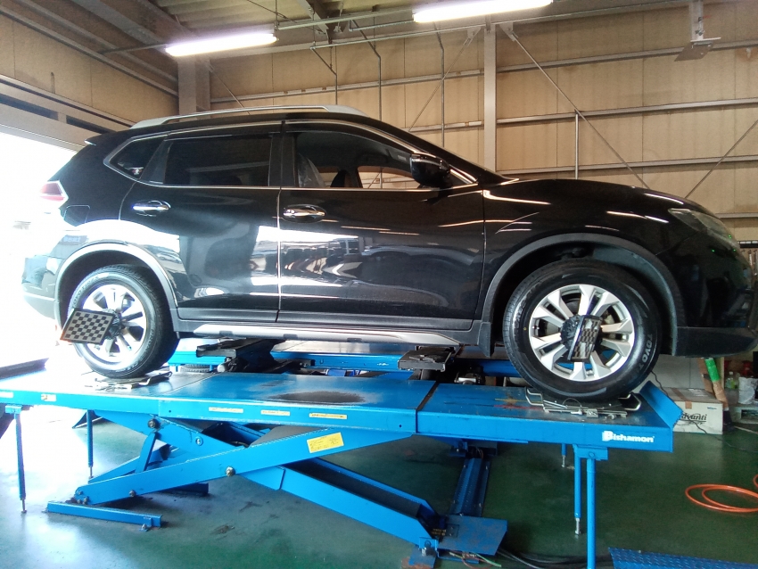 先日、日産エクストレイルのアライメント調整作業と