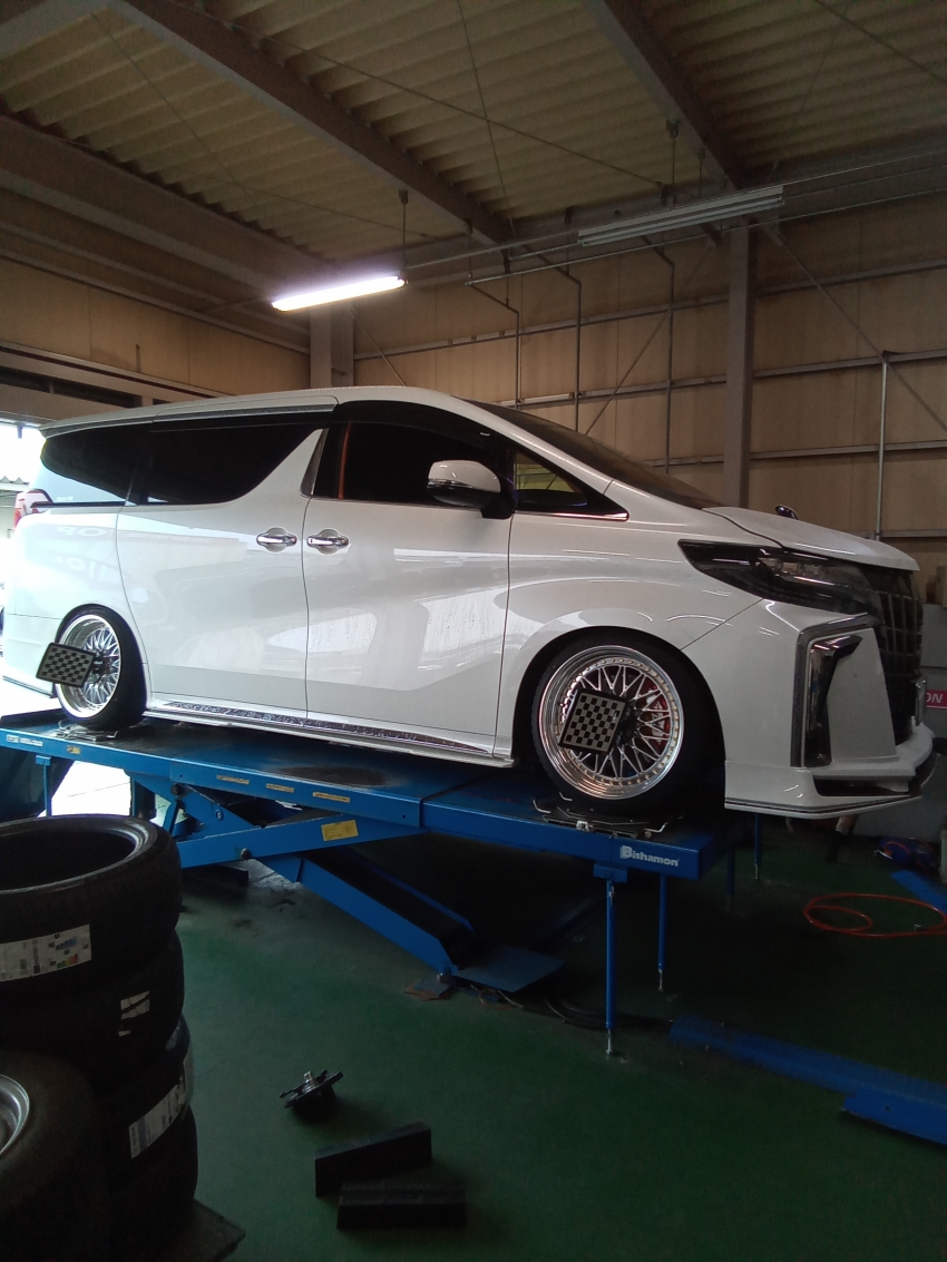 先程トヨタのアルファード、アライメント調整させて頂きました