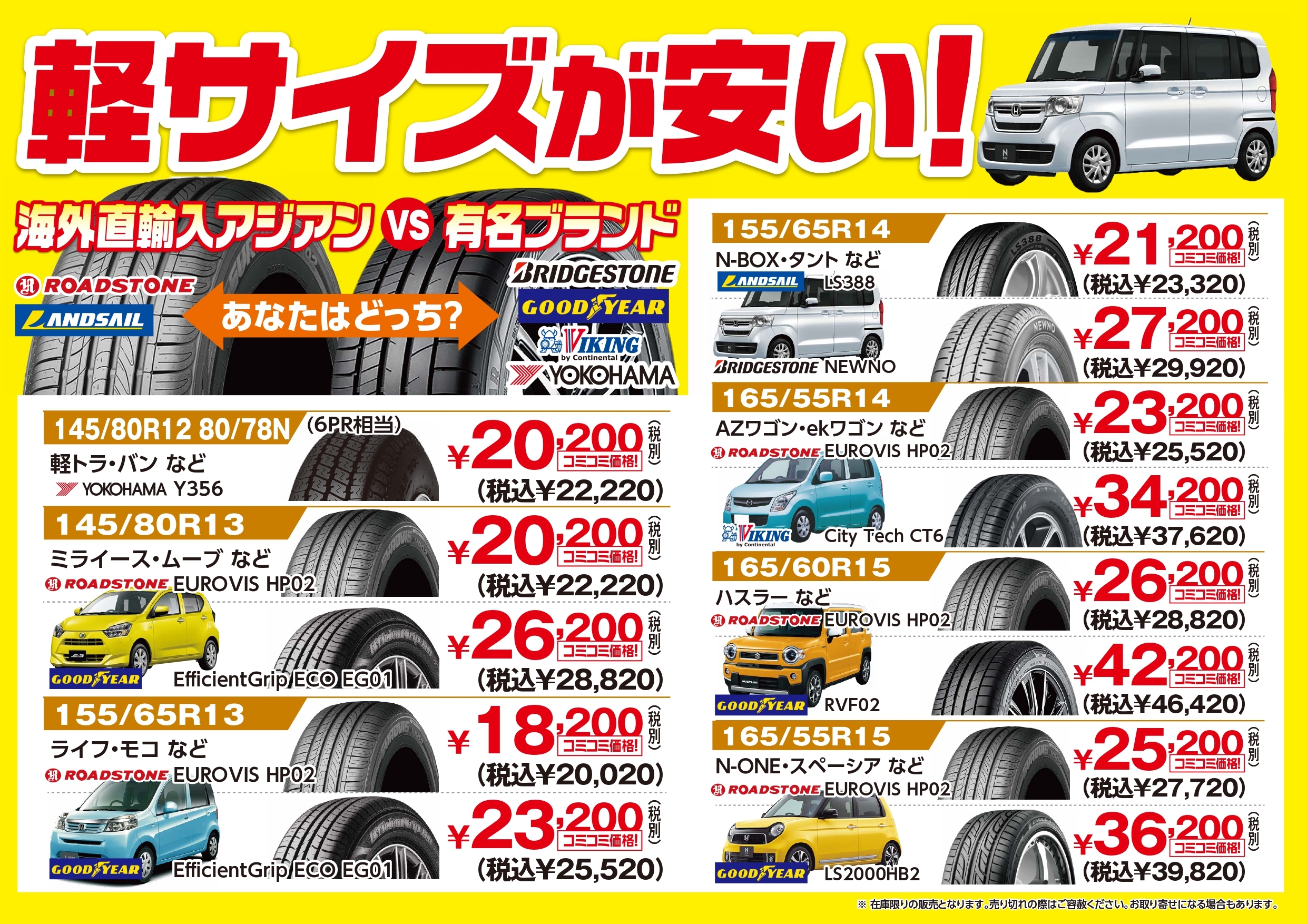 軽自動車用タイヤが安い!