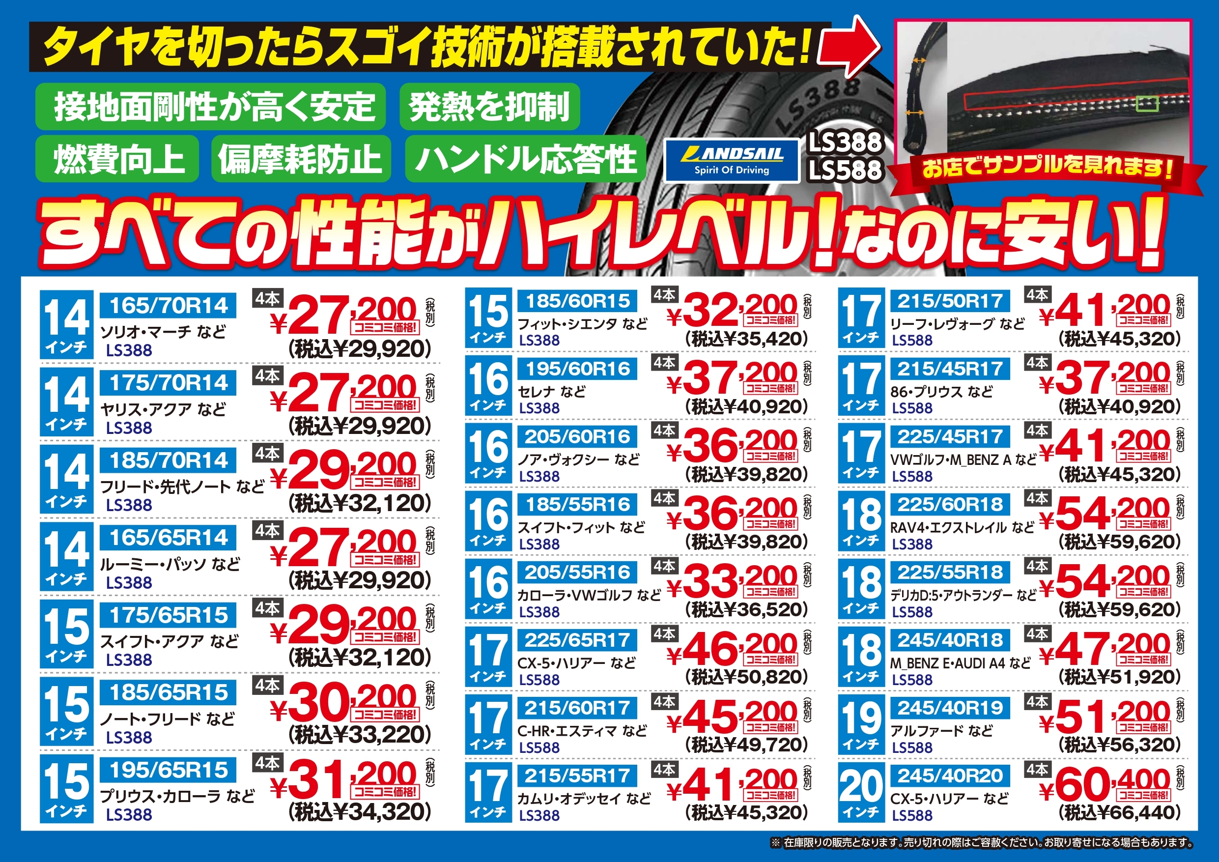 号外!スタッドレスタイヤ各メーカーが7月以降に続々値上げ?!在庫限りスタッドレス蔵出し!スタッドレス買ったら「工賃無料」!夏タイヤも安い!⑤
