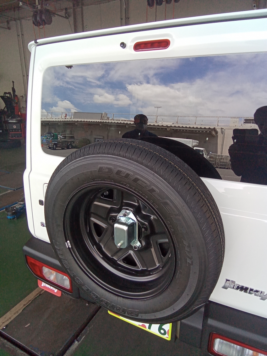 先日は新車のジムニーの背面スペアタイヤ交換させて頂きました