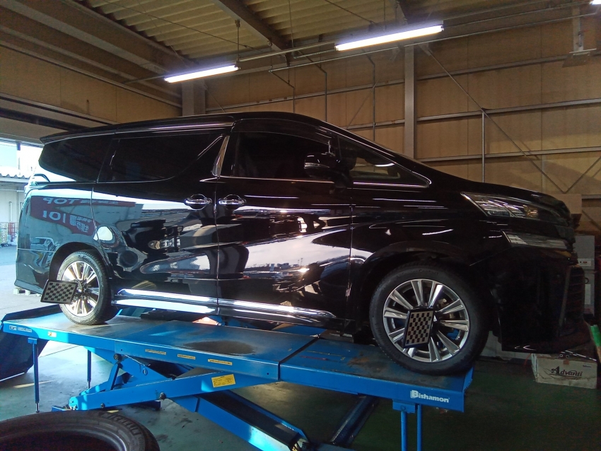 先日、トヨタ ヴェルファイアのアライメント調整を施工致しました!