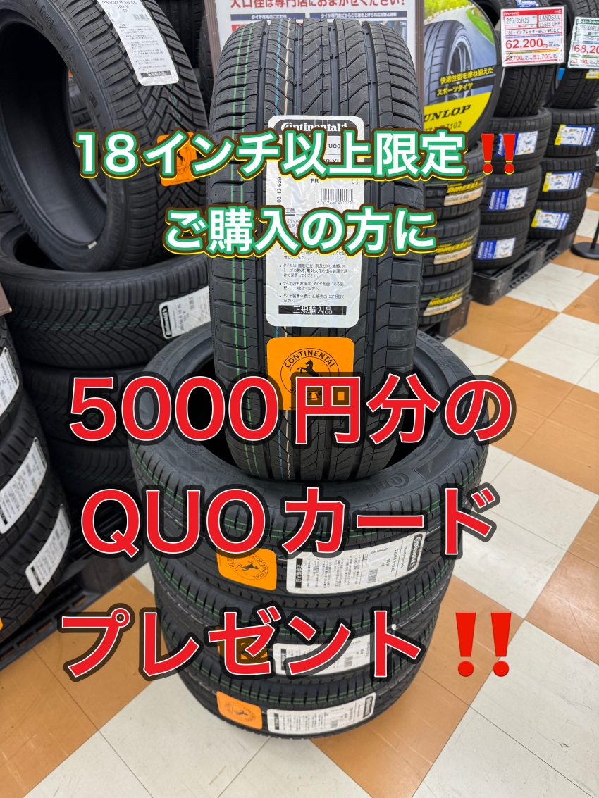 お得にタイヤが買えて、クオカードも貰えるこの機会に是非如何でしょうか!?