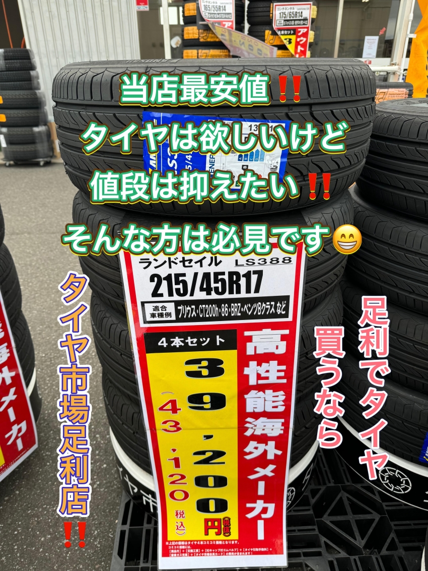 皆様、こんにちは!タイヤ市場足利店です!!