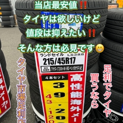 こんにちはタイヤ市場足利店です!