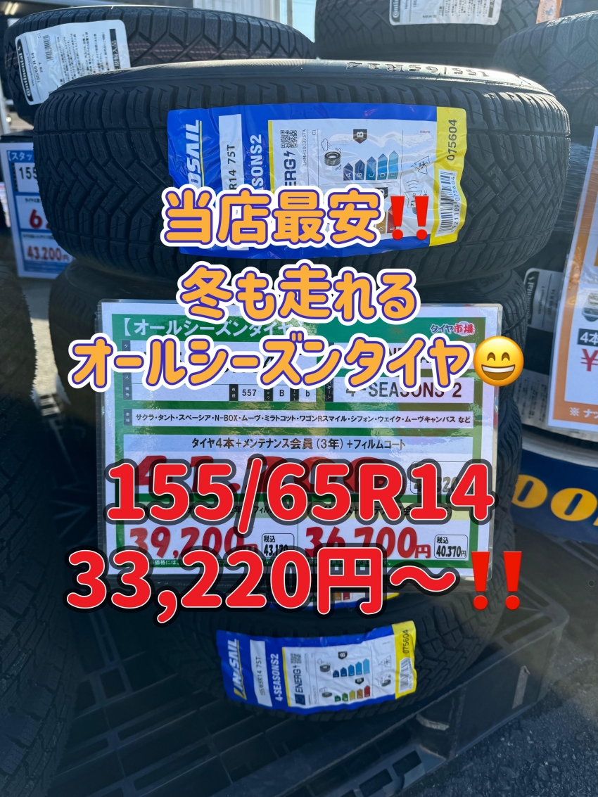 【セール開催中!!】タイヤ市場足利店では格安オールシーズンタイヤをたくさん展開中!!是非、当店までお越しください!!足利以外にも太田・桐生・邑楽エリアにお住いの方、その他の地域にお住いの方も是非!