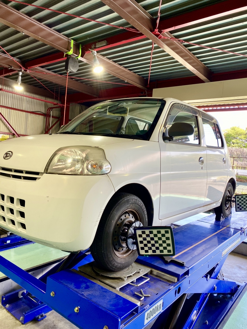 車検で足回りの部品を交換したらアライメントもセットでしましょう!!