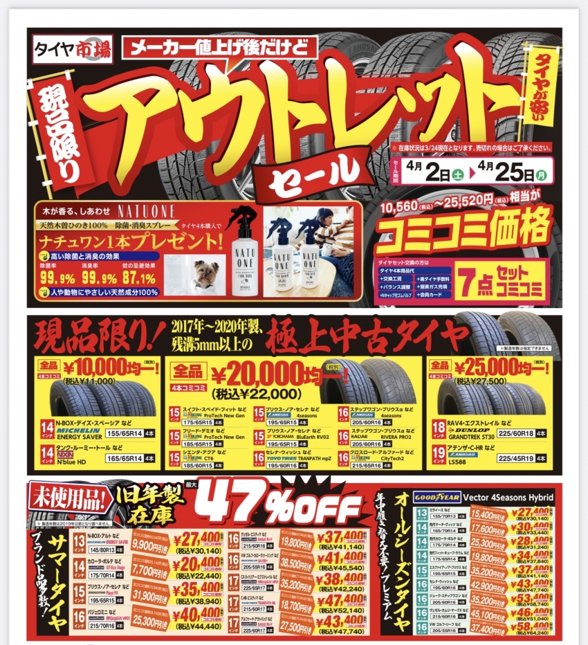 旧年製タイヤ!!中古タイヤ!!アウトレットセール開催中です!!