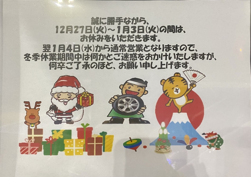 冬期休暇のお知らせです!!