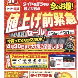 タイヤホテルにてお預かり中に、