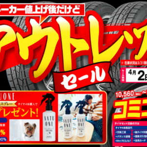 タイヤ市場前橋駒形店では4月2日~25日まで現品限り!!アウトレットセール開催...