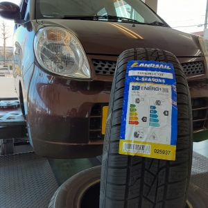 ヴィッツにオールシーズンタイヤ・ランドセイルフォーシーズンズ取付。