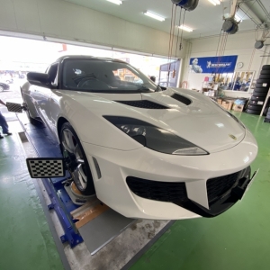 【欧州スーパーカー!】ロータス エヴォーラ アライメント調整!珍しいお車も是非ご相談下さい!!