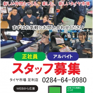 こんにちは!タイヤ市場足利店です!タイヤ市場では新しい仲間を募集中です(^^...