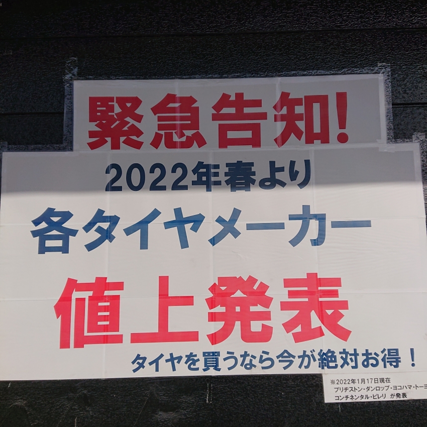 2022年春...タイヤ値上がり・・・