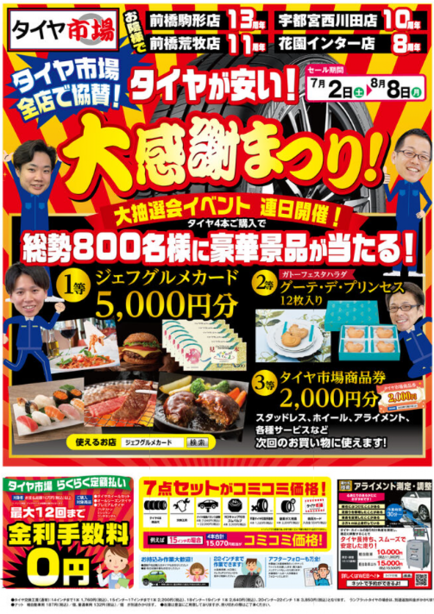 3等はタイヤ市場商品券 2,000円分!