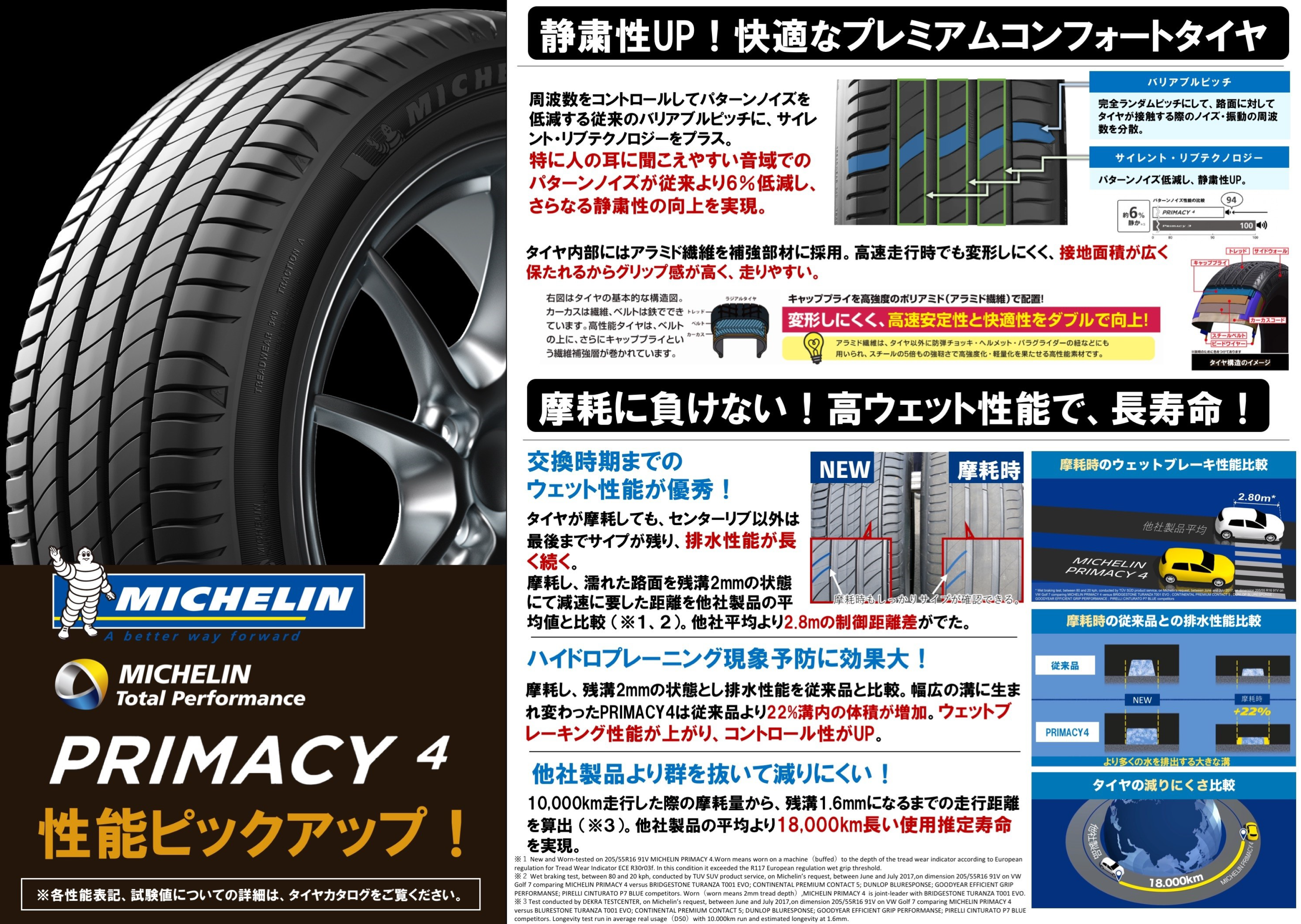 『「最後まで続く安全」を目指して』というのが、このタイヤのキャッチコピーですが、コンフォートタイヤとして、静粛性や乗り心地も非常にハイレベルです。