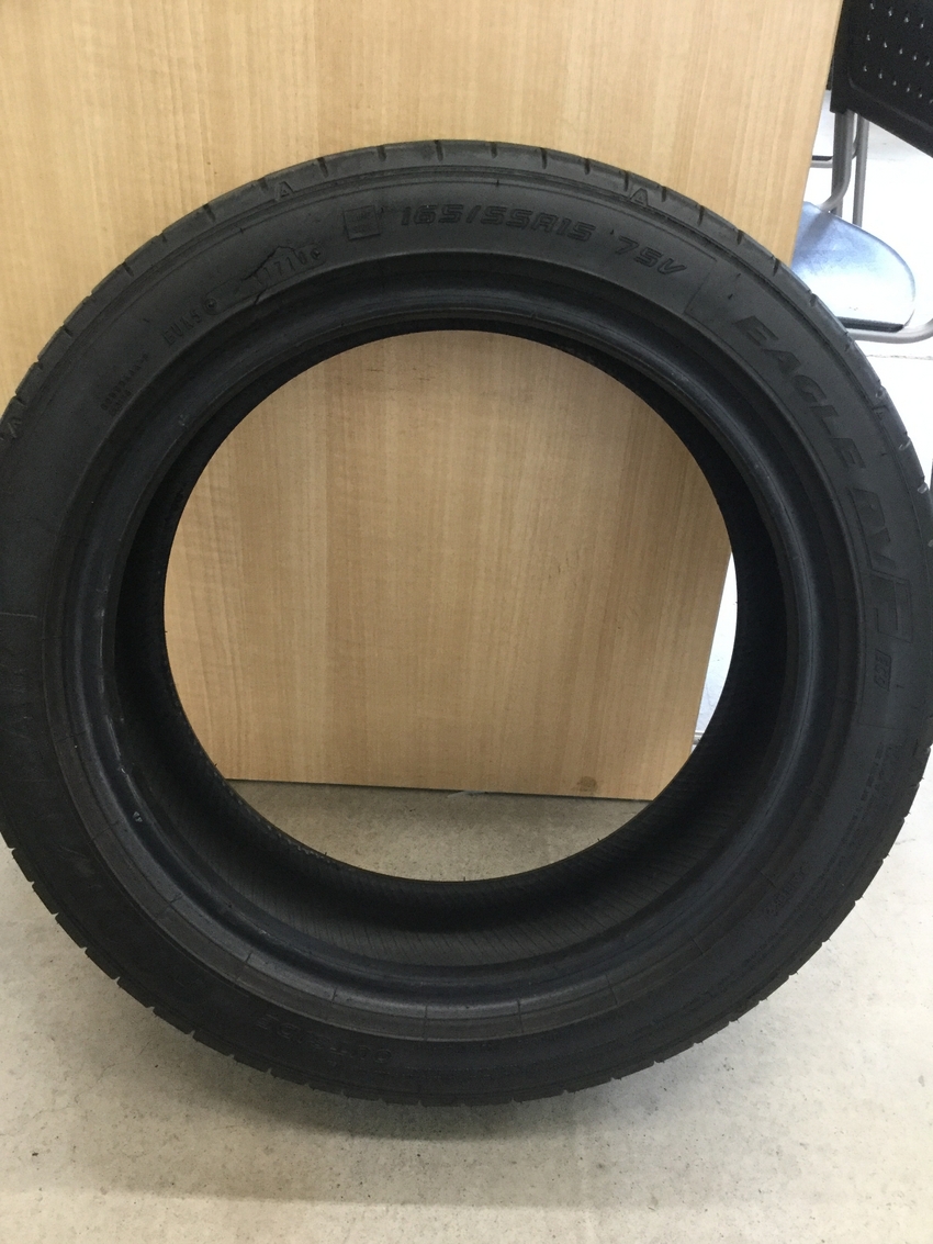 これは交換作業の後の画像ですが、交換する前はタイヤの横の部分がおできのように少し膨らんでいる状態でした。