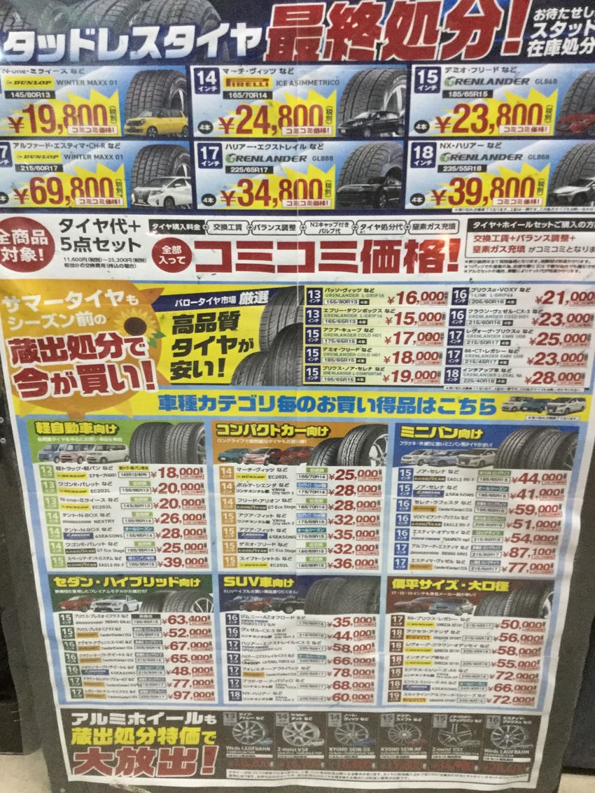 スタッドレスタイヤも夏タイヤも今が買い時です!