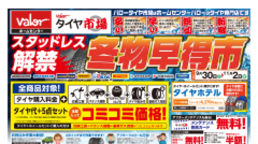 本日より「スタッドレス解禁 冬物早得市」セール開始です!