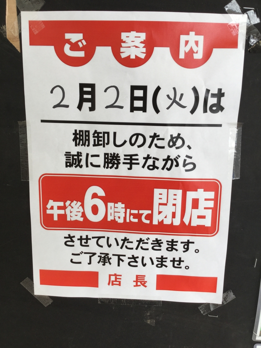明日、2月2日(火)は誠に勝手ながら、