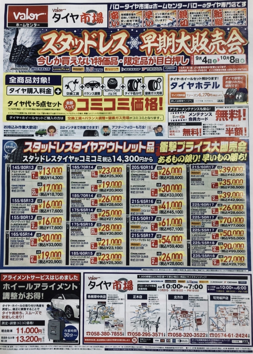 AM9:00~PM8:00(ピット作業受付:AM9:00~PM7:00)1月/2月/5月/6月/7月/8月/9月