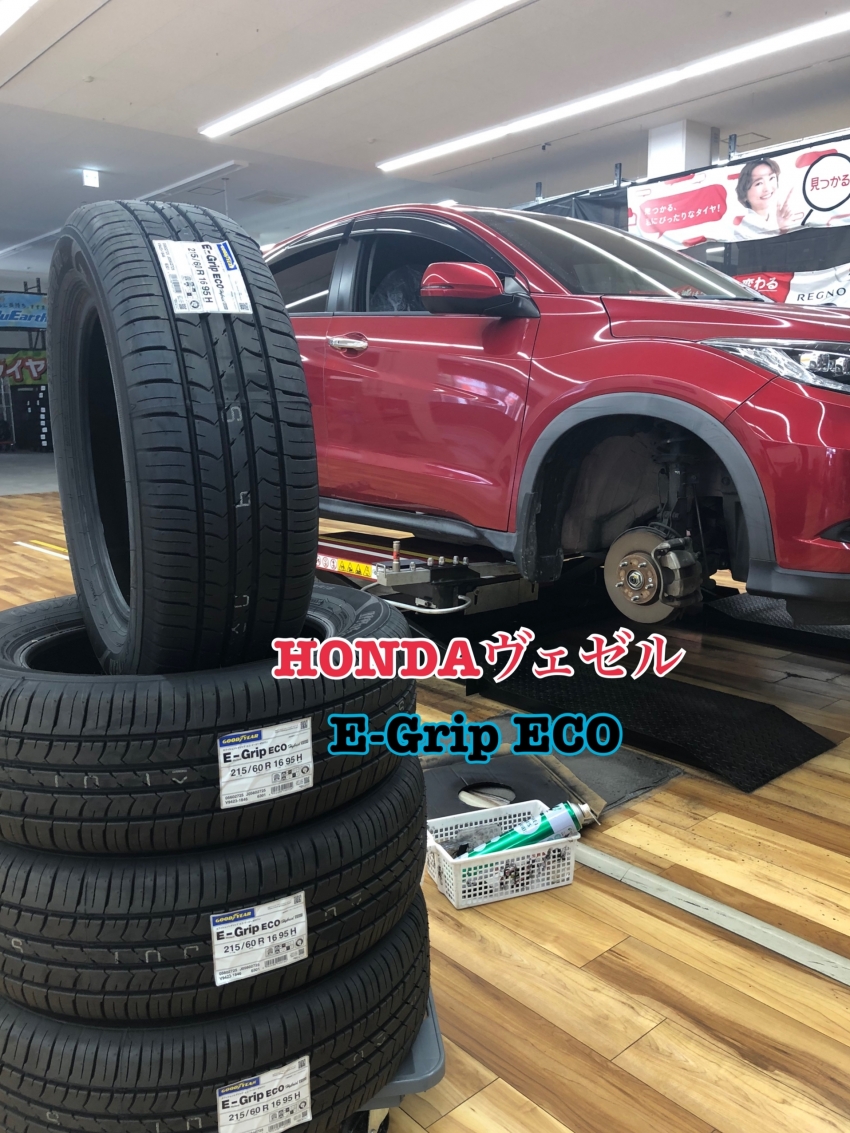 今回はHONDAヴェゼルにGOODYEAR EfficientGrip ECO EG01(グッドイヤー エフィシェントグリップ エコ イージーゼロワン)お取り付けさせて頂きました✨
