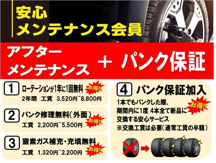 ☆新品タイヤ4本ご購入時にご加入頂けるメンテナンス会員☆
